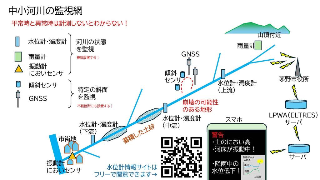 これらは今後も同じような前兆現象で発生する可能性があることから,住民からのニーズ,すなわち課題としてこれらを検出する中小河川の見守りシステムとして構築しています.蓄積したデータは,今後の長期観測LTM(Long-term measurement)の初期値として活用することができます.