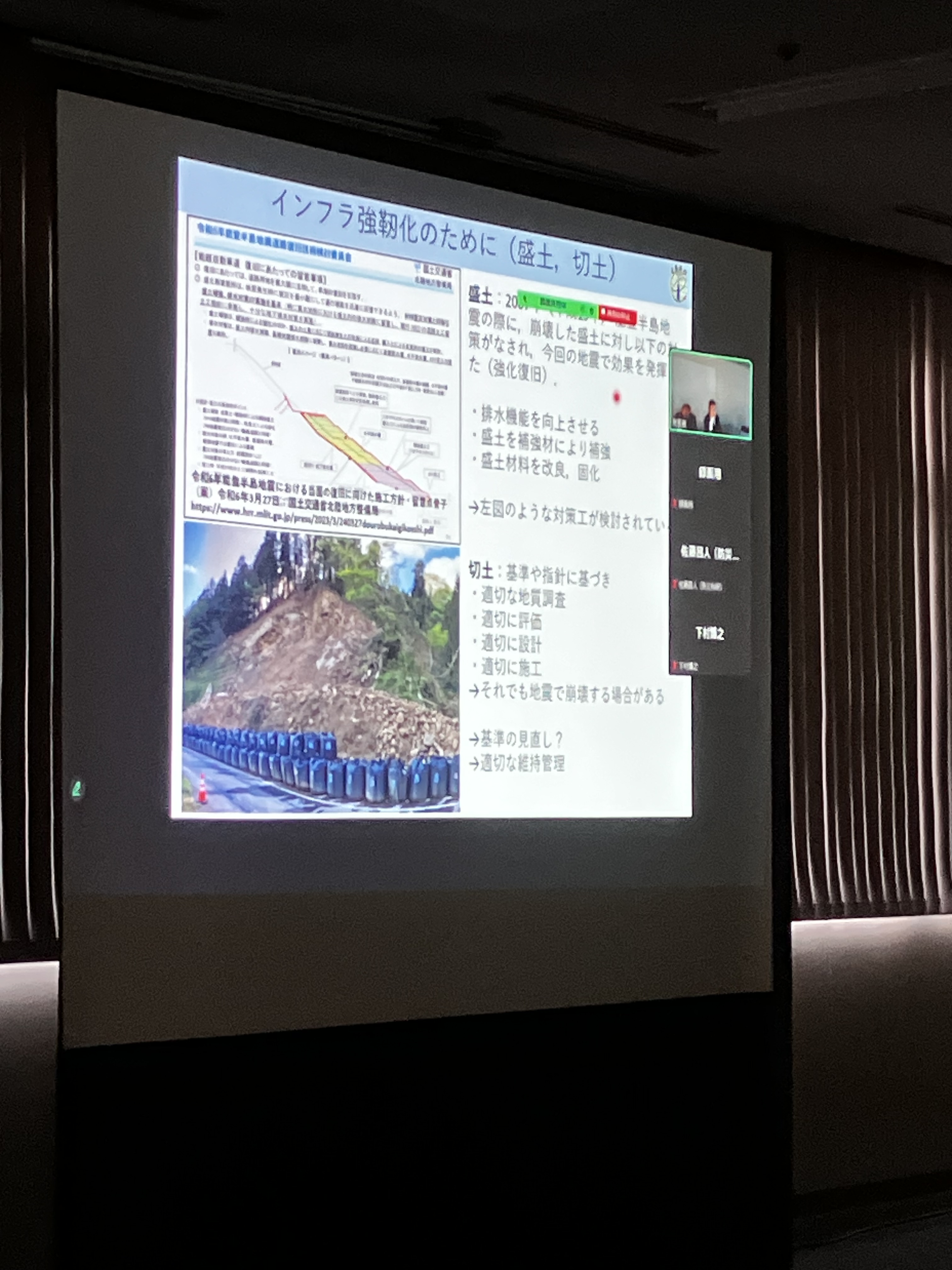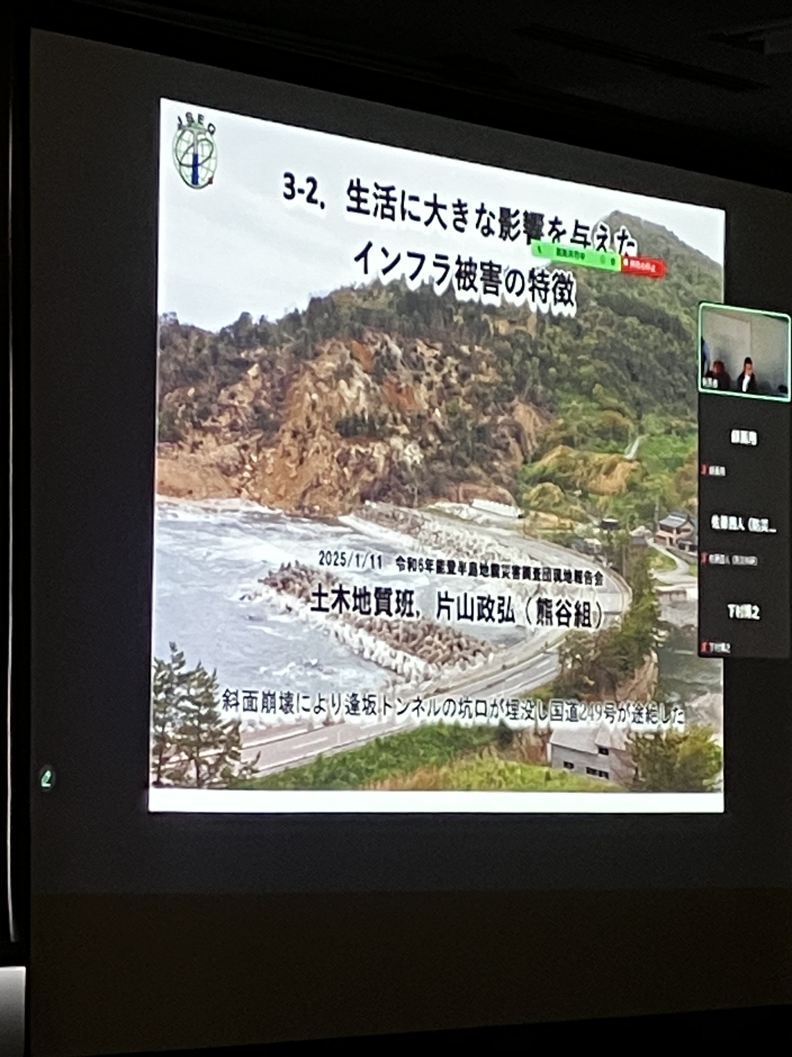 日本応用地質学会が主催する能登半島地震の報告会が開催されました.概ね1年後の時期の開催ですが,ただ速報を提示するだけではなく,災害に対してどのような視点が必要ということも含めた内容になりました.前日まで大雪でしたが当日は幸いに天候が回復し,学会員や一般参加を含めて200名近い多くの方にお越しいただきました!