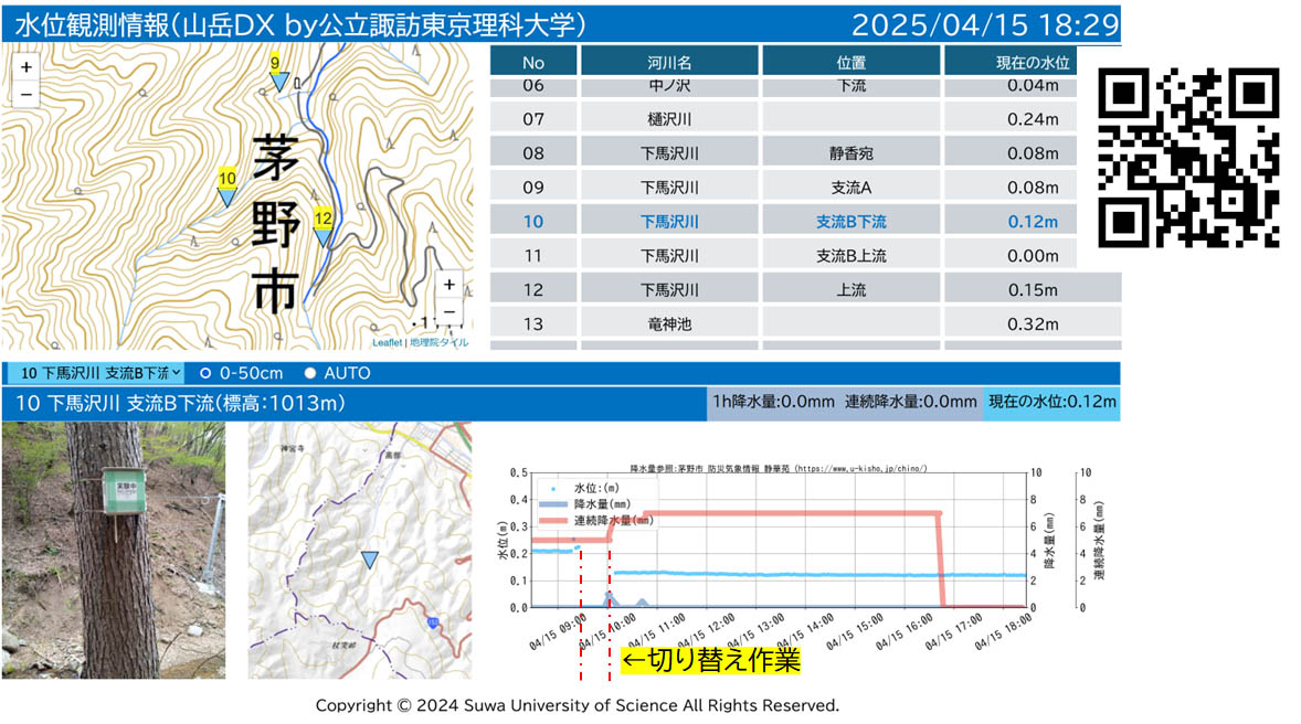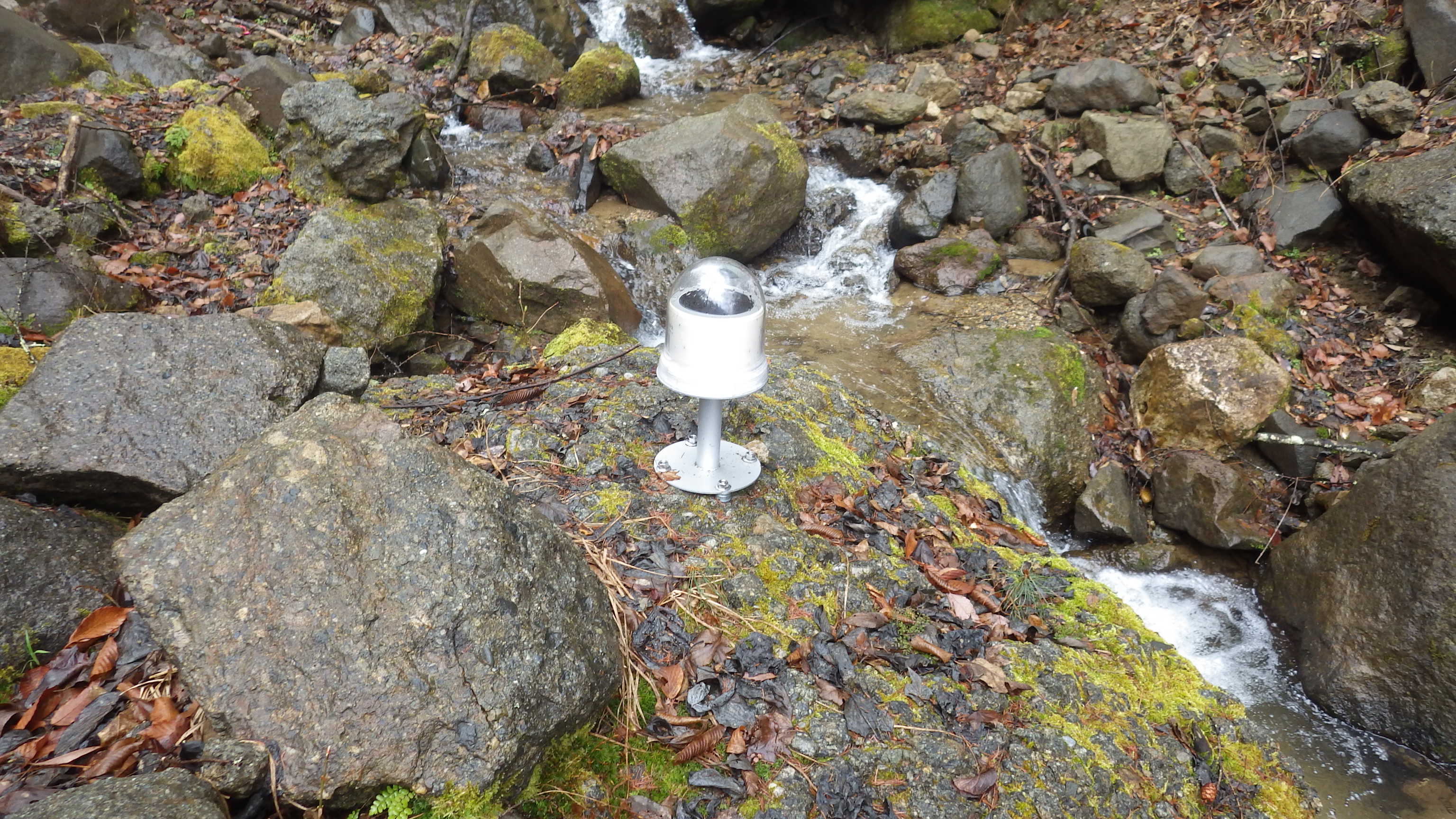この河川では2021年に発生した土石流災害後河川改修と堰堤の設置が進んでいますが,今年度は土石流災害が発生した支流にさらに新設の堰堤が設置されるようです.水位計は,設置箇所から100m上流に移設しました.よりによってみぞれ交じりの寒い雨の中,アンバーロジックスさんと作業しました.