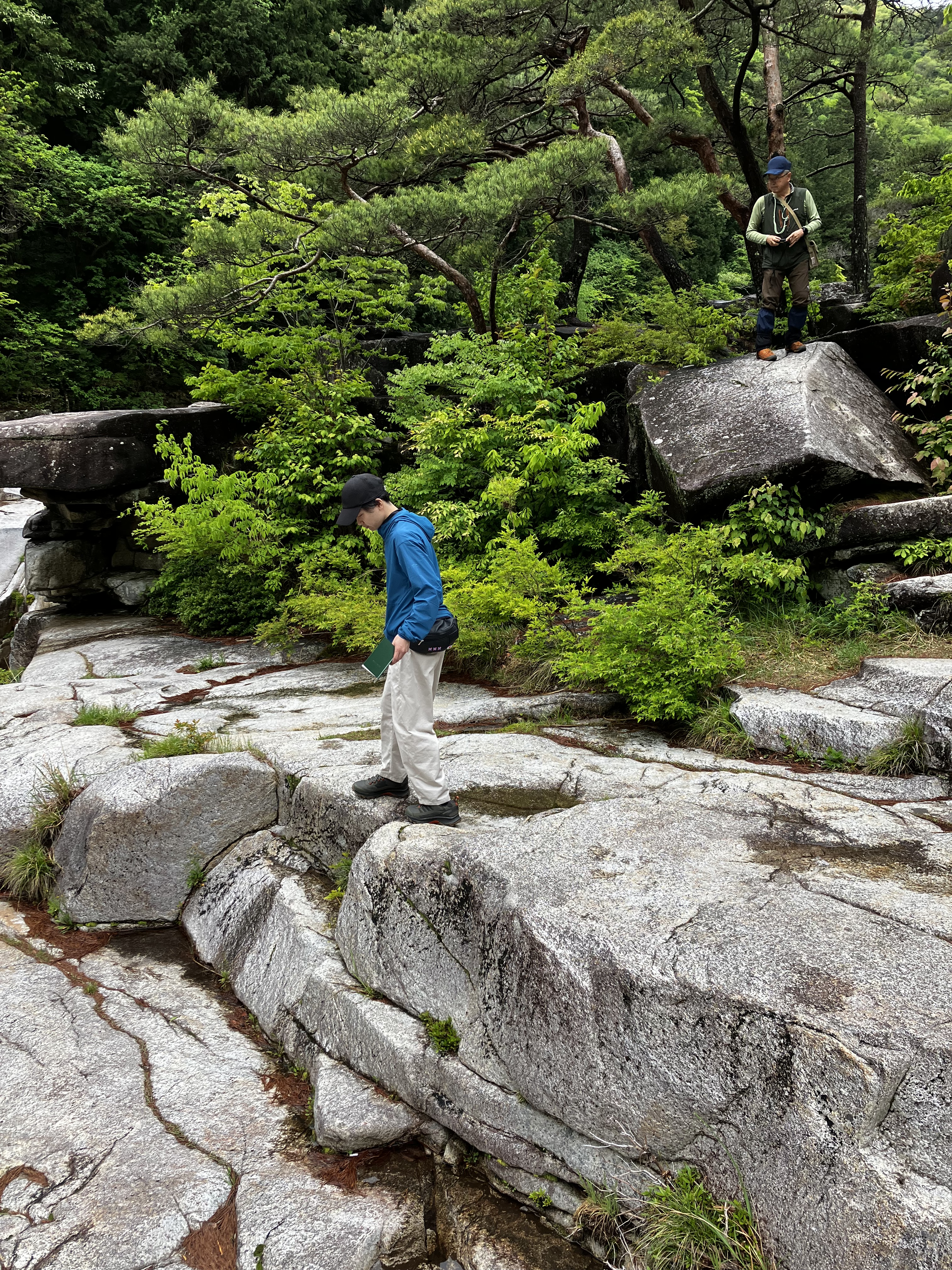 赤沢自然休養林は、最高に美しい場所でした!もちろん木曽ヒノキもですが、花崗岩の露頭も豊富かつ、興味深い物ばかりでした。コアストーンらしき物や、典型的なシーティングジョイントも多く見られました(個人的には瑞浪の立坑観察時以来か)。