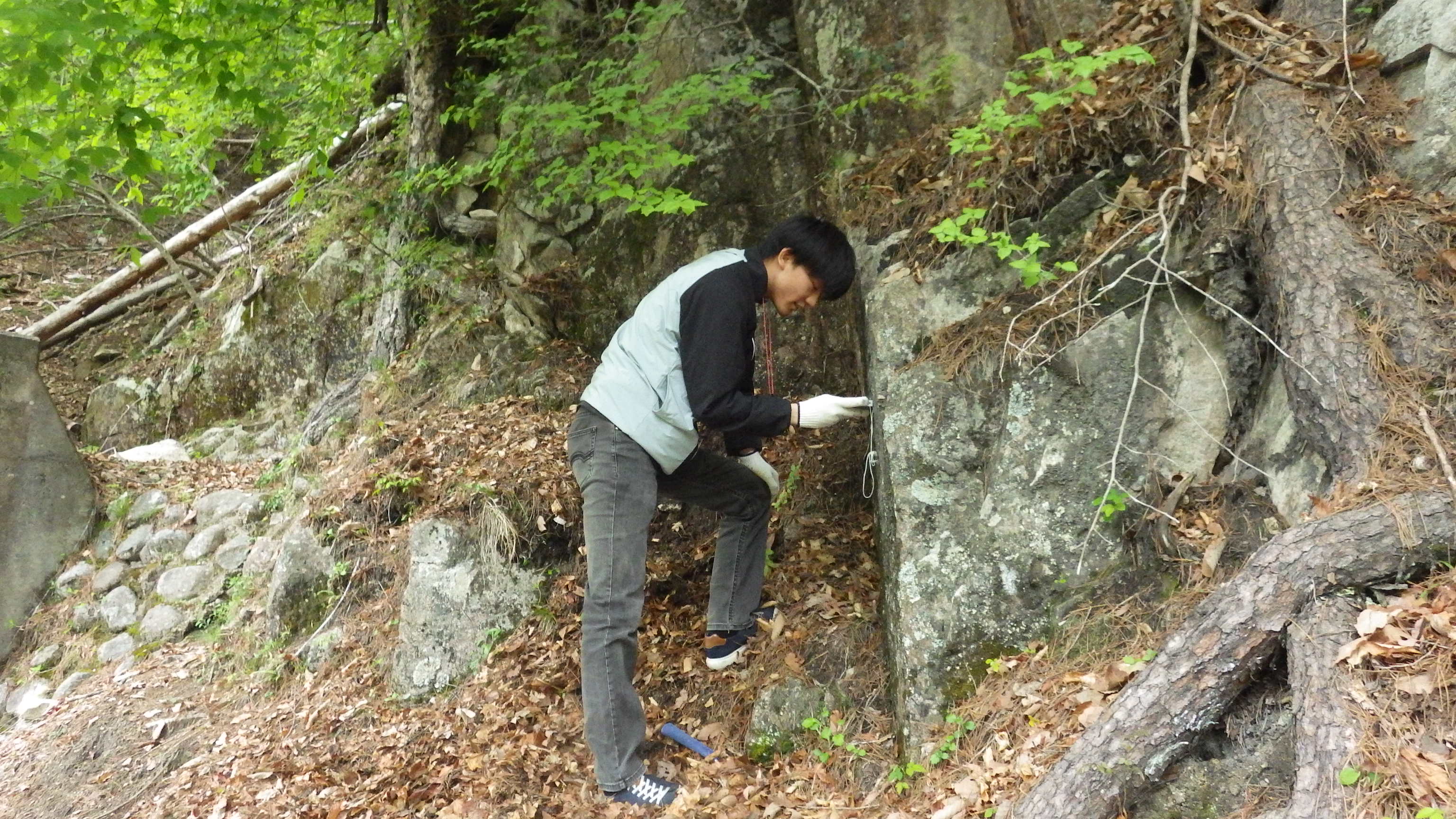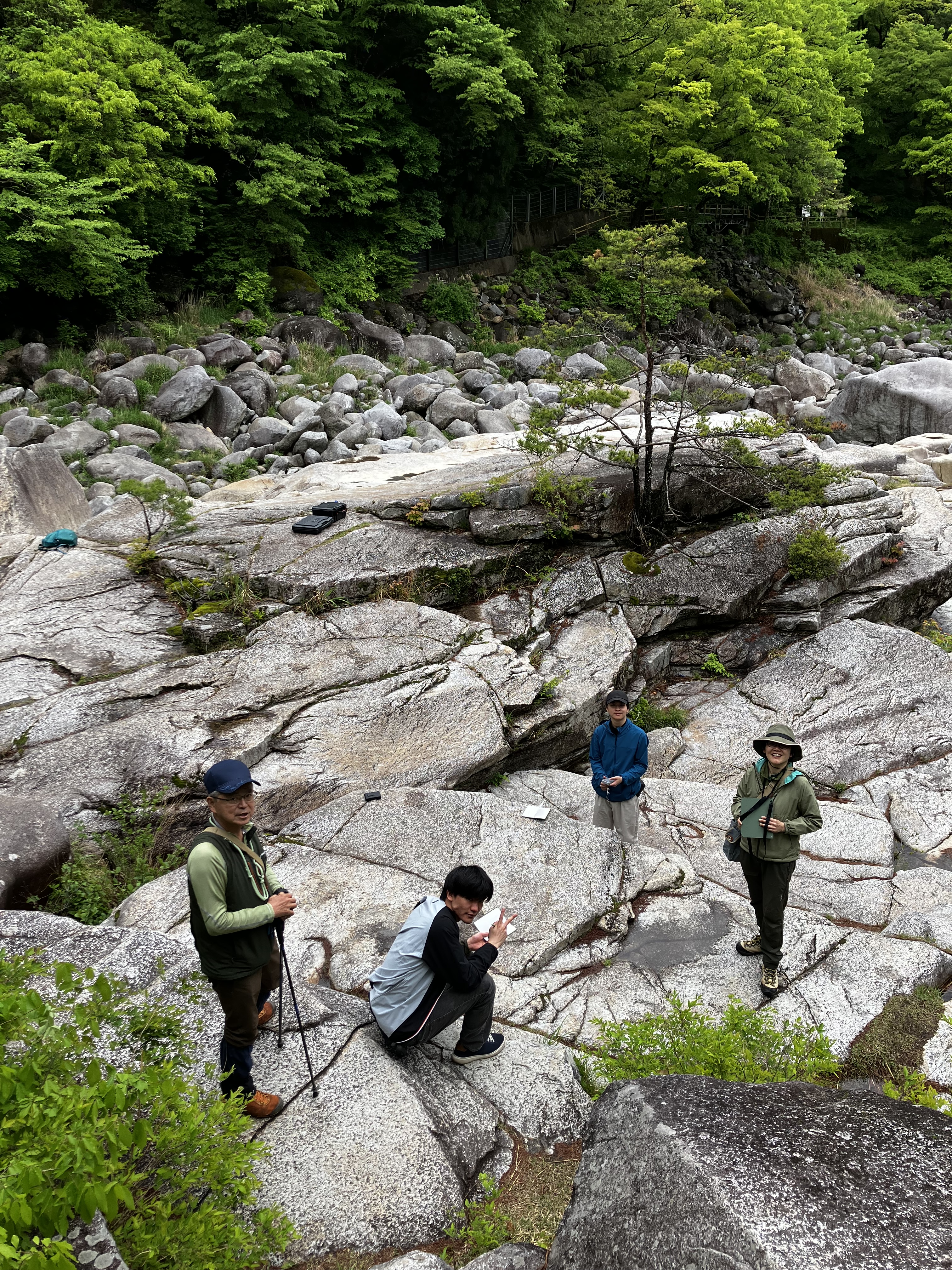 先週末は、千木良先生と大鹿村中央構造線博物館の宮崎さんと一緒に、大鹿村〜駒ヶ根、上松町の寝覚の床〜赤沢自然休養林へ調査を行いました。目的は、調査範囲内の西南日本内帯、領家花崗岩体の特性調査です。理科大からは、諏訪周辺の花崗岩分布と地下水を、卒論にする2人も参加しました。