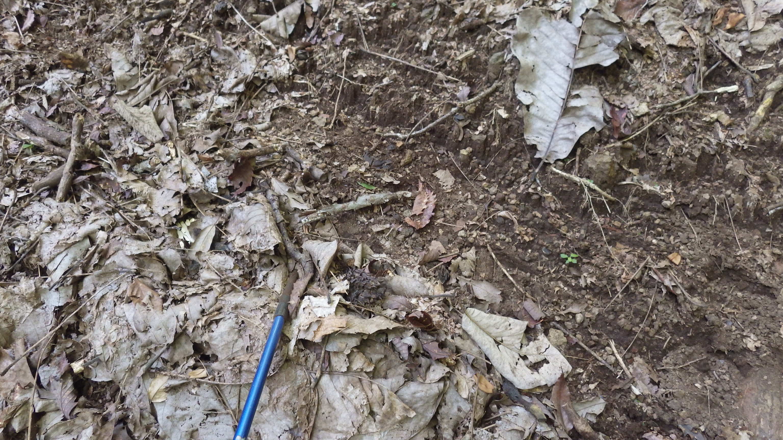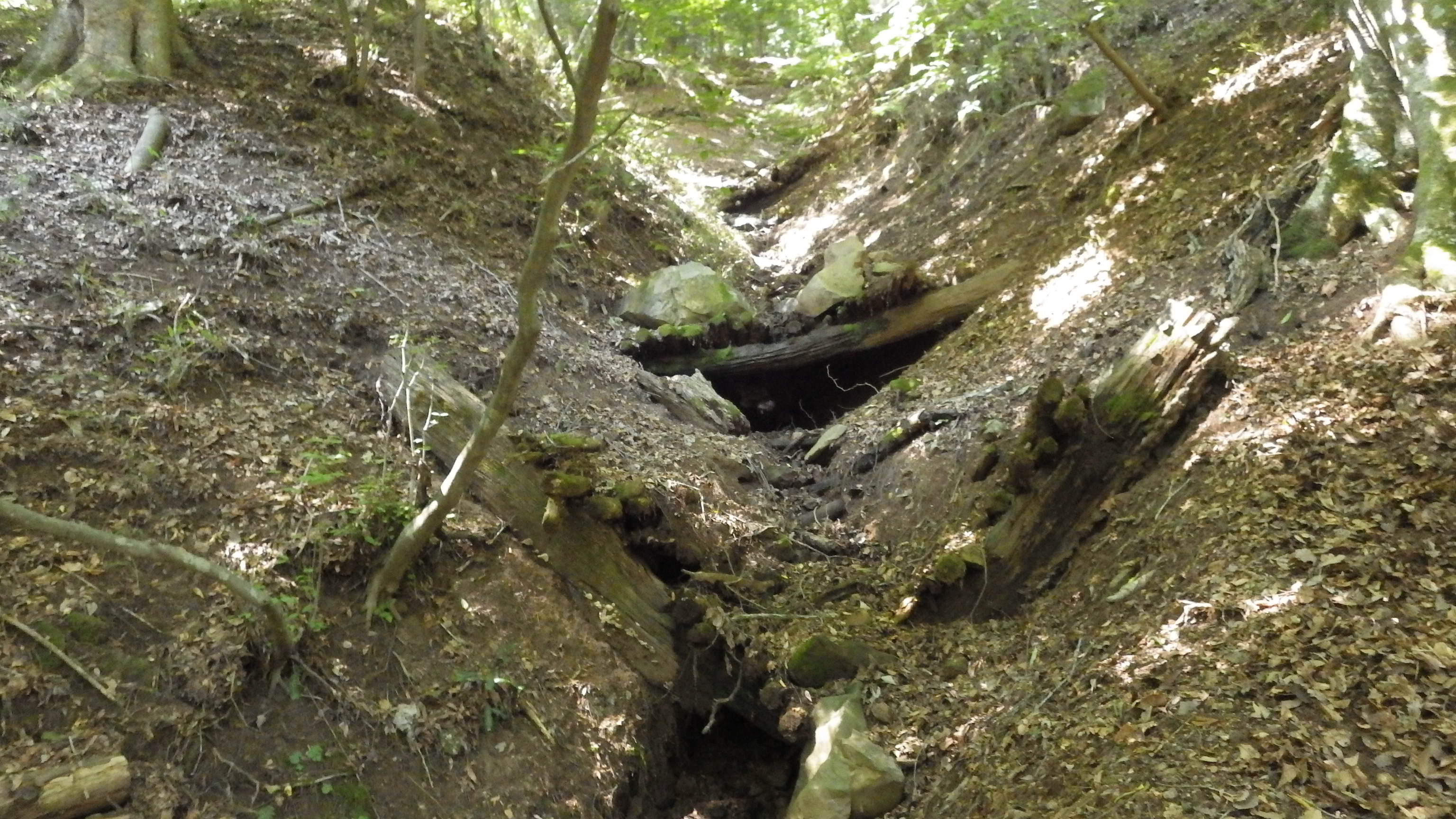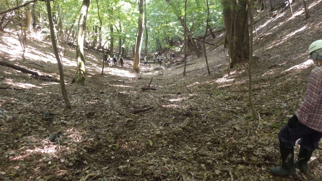 斜面には倒木が多く,また植生も成長しない.これはシカの食害だったり斜面が急傾斜で安定していないこと,など複数の理由がある.