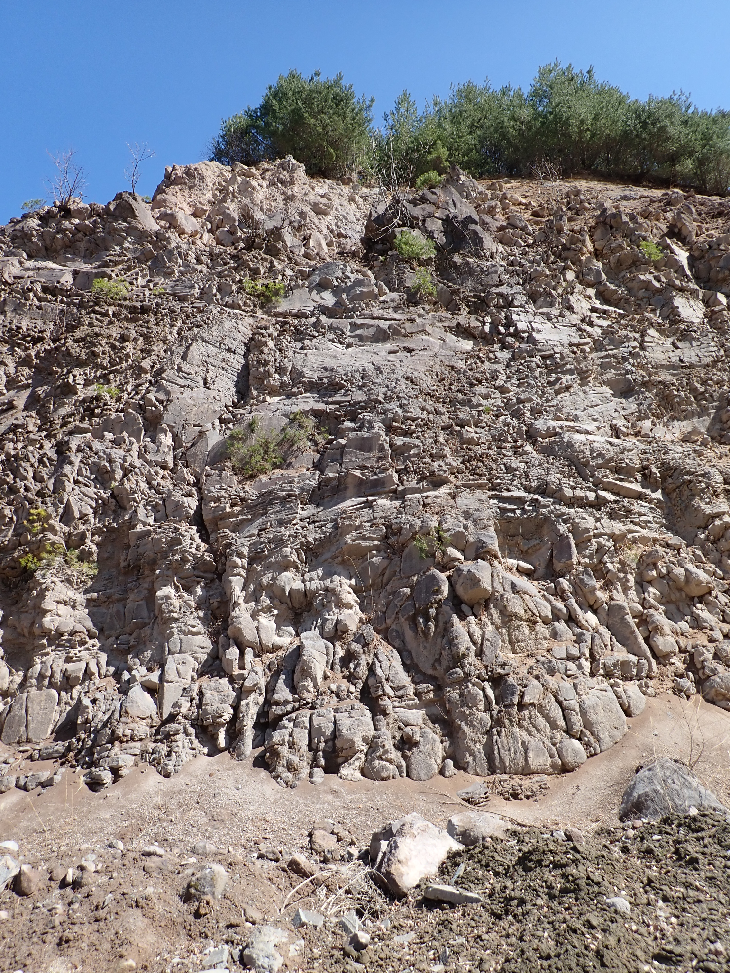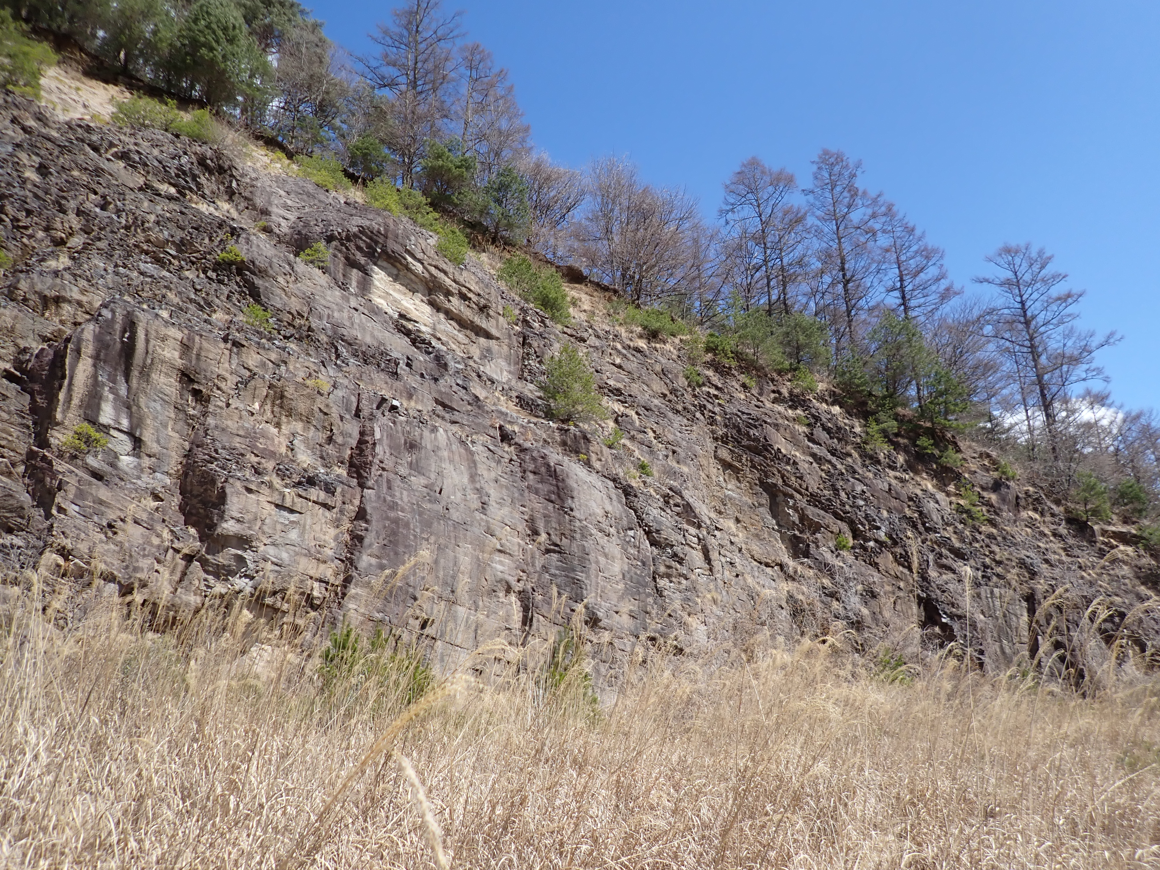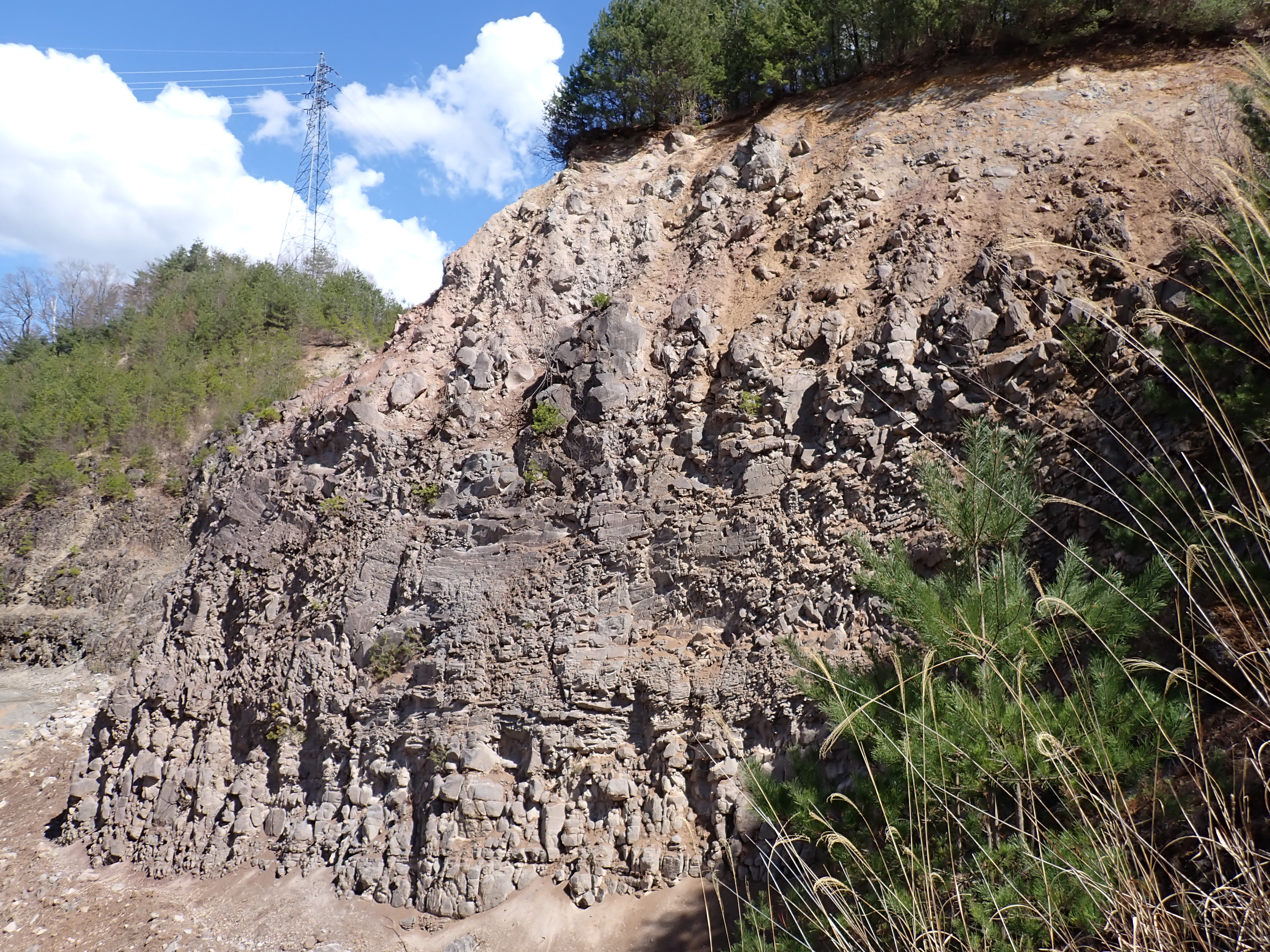 砕石場自体はすでに閉鎖してるとのことで、ベンチカットの露岩部は、徐々に埋め戻されるとの事でした。